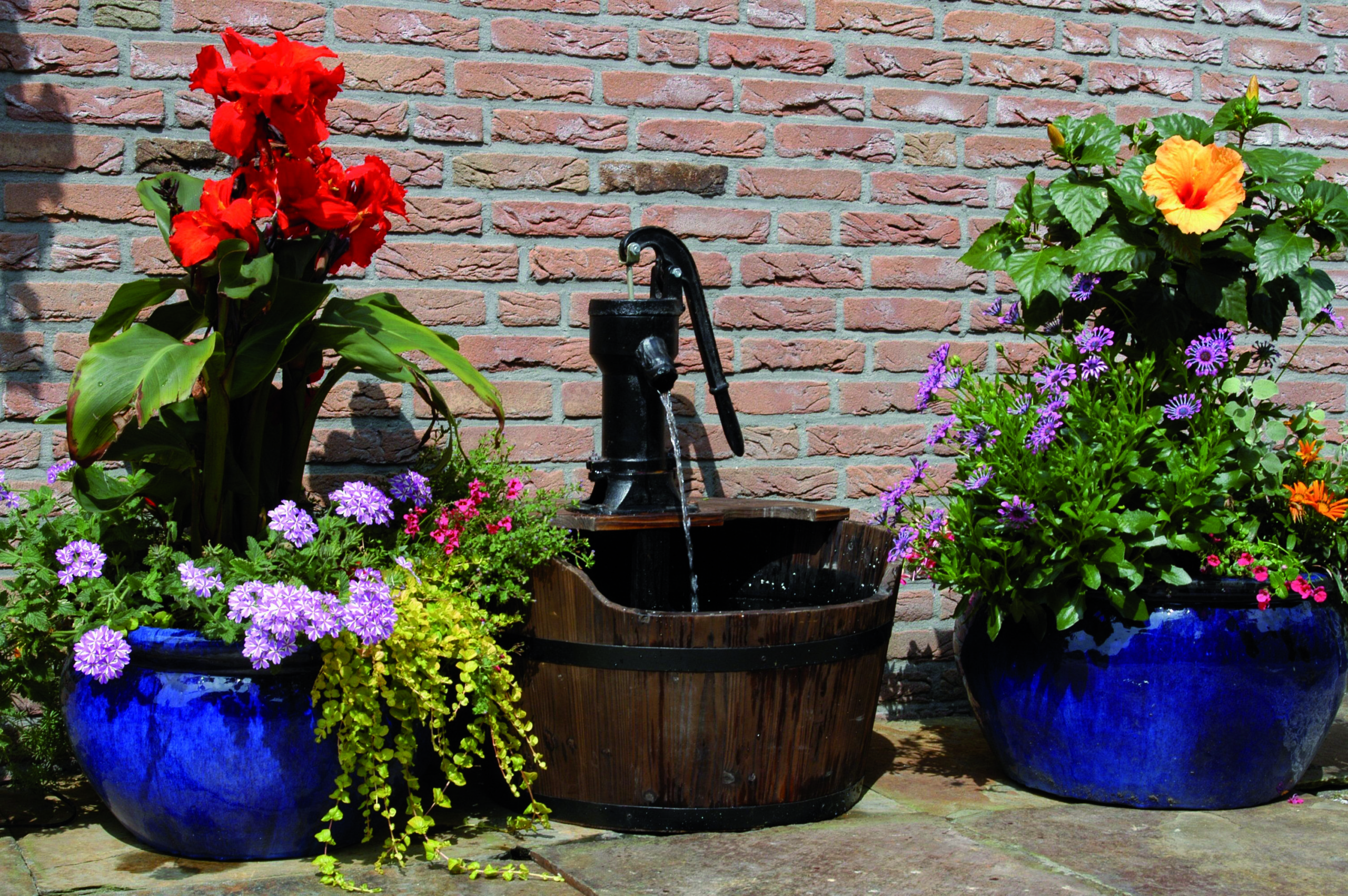 Water in de tuin hoeft niet altijd een vijver te betekenen. Zacht kabbelende waterpartijen worden steeds populairder. Acqua Arte set Newcastle deze rustieke set met waterpomp brengt nostalgie in uw tuin. Complete set met pomp, aansluitmateriaal en bassin. Gemaakt van hout met gietijzeren pomp.