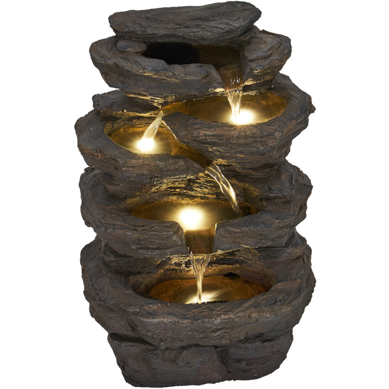 De 4-diode LED-verlichting verspreidt een warm licht en geeft een zachte toets aan dit kant-en-klare decoratieve element. De Miras-fontein nodigt uit tot rust, met zijn zachte geruis van druppelend water.